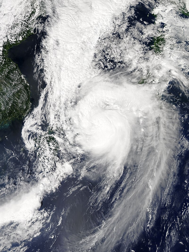 Typhoon Jebi over the Osaka Bay on September 4, 2018 (Header photo and photo courtesy of NASA via Wikimedia Commons)