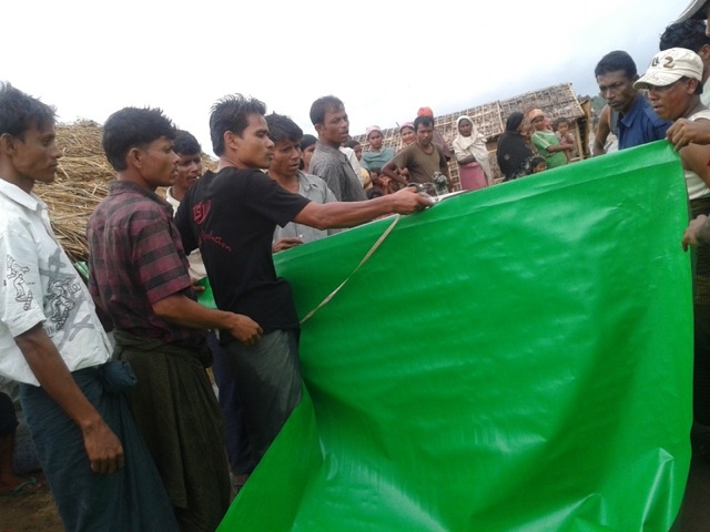Over the past two months, Partners delivered 910 waterproof tarps, as well as bamboo, to Rohingya families.