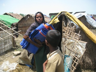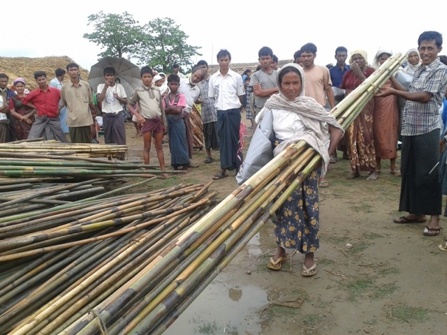 Partners shows God’s love to the Rohingya in practical ways, like handing out tarps and bamboo to build shelters. (Image courtesy Partners)